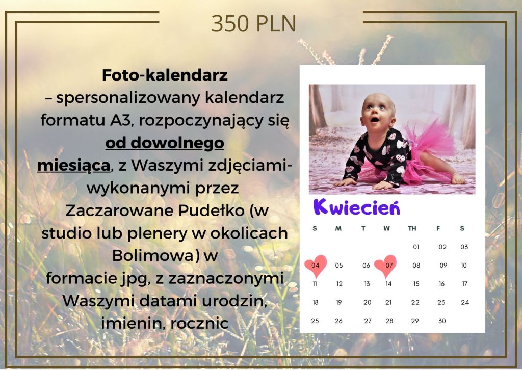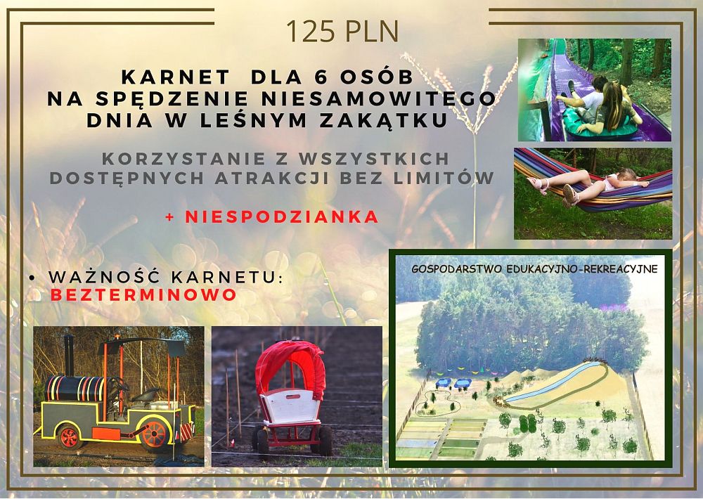 W moim projekcie do wybrania jako nagrody za wsparcie są przede wszystkim albo wejściówki do Leśnego Zakątka, albo moje usługi fotograficzne, więc jeśli w przyszłości wybieracie się do nas wspierając możecie wybrać sobie nagrodę pod tytułem „karnet na pobyt” , to samo dotyczy zdjęć- wybierasz pakiet lub sesję, którą wykonam dla Ciebie w przyszłości- termin ustalimy wspólnie.