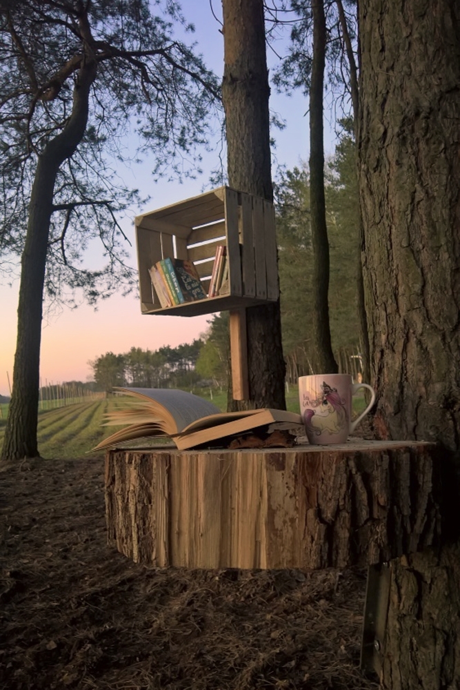 Pracujemy teraz nad kolejnym fragmentem gospodarstwa, na razie będzie to kameralne miejsce, mam nadzieję że się spodoba naszym gościom. Zlokalizowane w lesie, tuż przy polu lawendy oraz przy polance piknikowej. Na półkach będą różne książki do poczytania, więc nie trzeba będzie pamiętać, aby zabrać ze sobą. Planujemy też miejsce gdzie będzie można wymieniać się książkami- coś przywieźć coś innego ze sobą zabrać, można też będzie zostawić książki, których już nie potrzebujecie aby poszły w świat i aby komuś innemu mogły sprawić radość. My nie wyobrażamy sobie życia bez książek i naszego Zakątka bez takiego czytelniczego miejsca też sobie nie wyobrażamy;-)